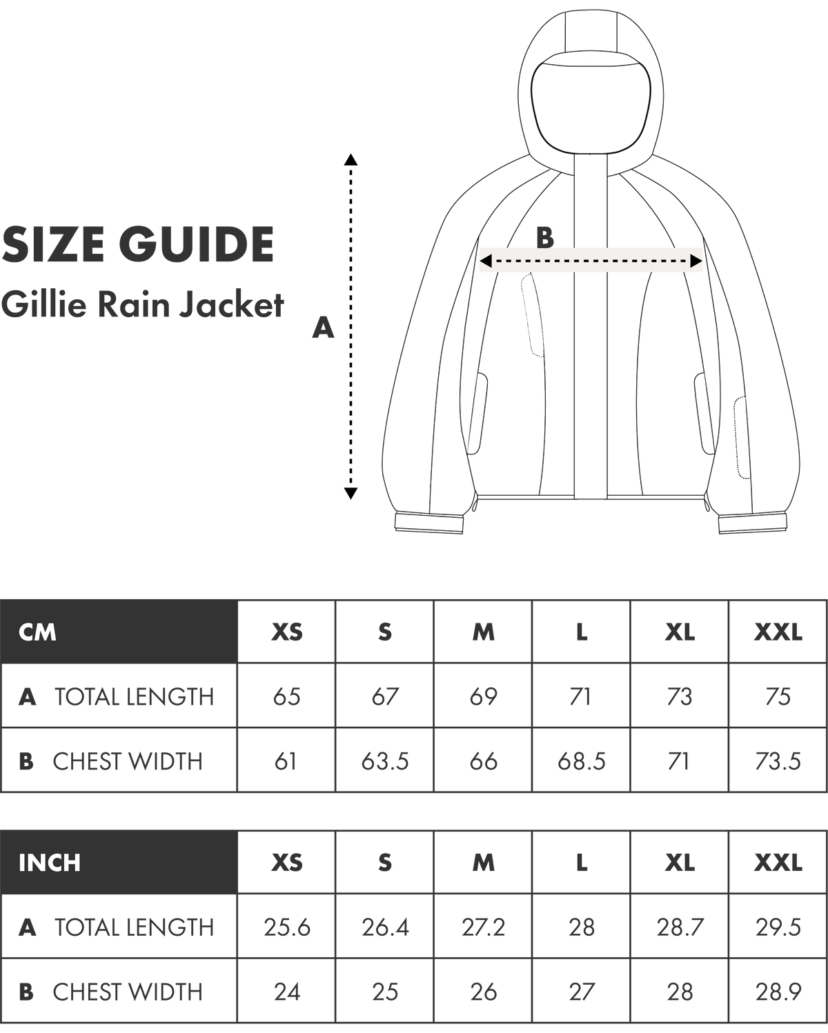 - adjustable waist, hood and cuffs