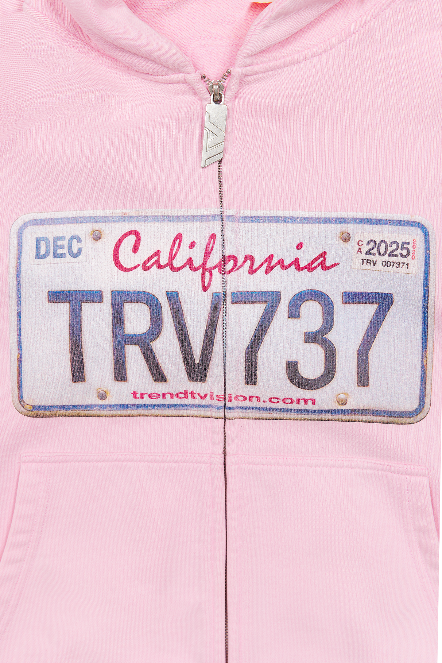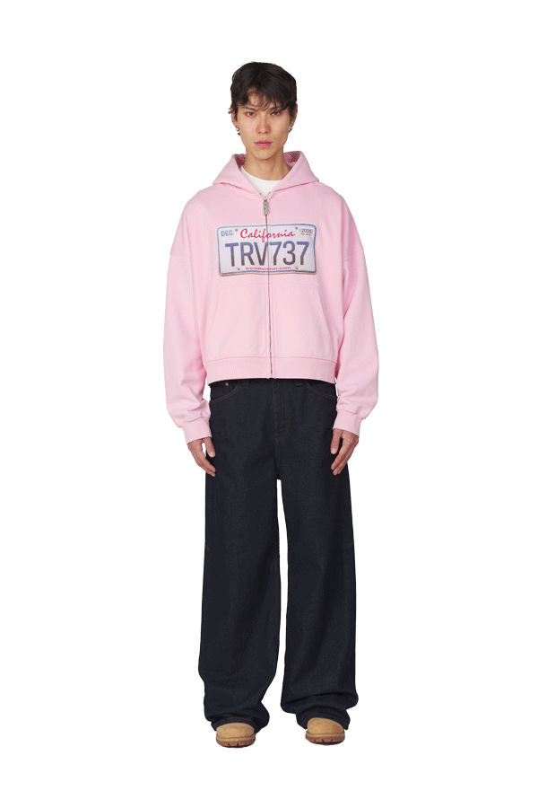 License Plate Zip Hoodie Pink